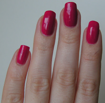 Färgen är alltså en stark, kall cerise och det är ett krämlack utan det minsta skimmer eller glitter. Ibland är det skönt eftersom, ja, kräm är lugnare på naglarna (såtillvida det inte är en neon då men de är ju en kategori för sig). Den här typen av färger känns oftast vanliga och jag tror att många förbiser dem. Det är sällan det blir en storm bland nagellacksnördar. Men samtidigt så tycker jag att det är en mycket bra färg. Den är liksom lite edgy utan att bli för påträngande. Förstår ni hur jag menar? Dessutom så tror jag att den lockar en större målgrupp. Jag har egentligen aldrig tänkt på det förut, vilka som kanske kan gilla eller uppskatta en viss färg eftersom förut så har det egentligen bara handlat om de färger jag gillar och de jag köper. Jag tror jag aldrig skulle köpt "Girl about town" i butik men nu när jag har det hemma så gillar jag det väldigt.